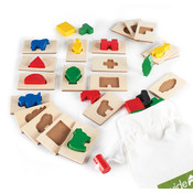 The Award-Winning 3-D Feel & Find game features a reusable cloth bag which contains 20 matching wooden shapes and printed tiles. To play this educational game deal out the tiles and have children reach into the bag to Feel & Find the corresponding wooden shapes. This game can be played alone or in larger groups. This is a great visual and tactile exercise for your child. Features:. 20 matching wooden shapes and printed tiles. Cloth bag cork board hardwood. For ages 3 years and older.
